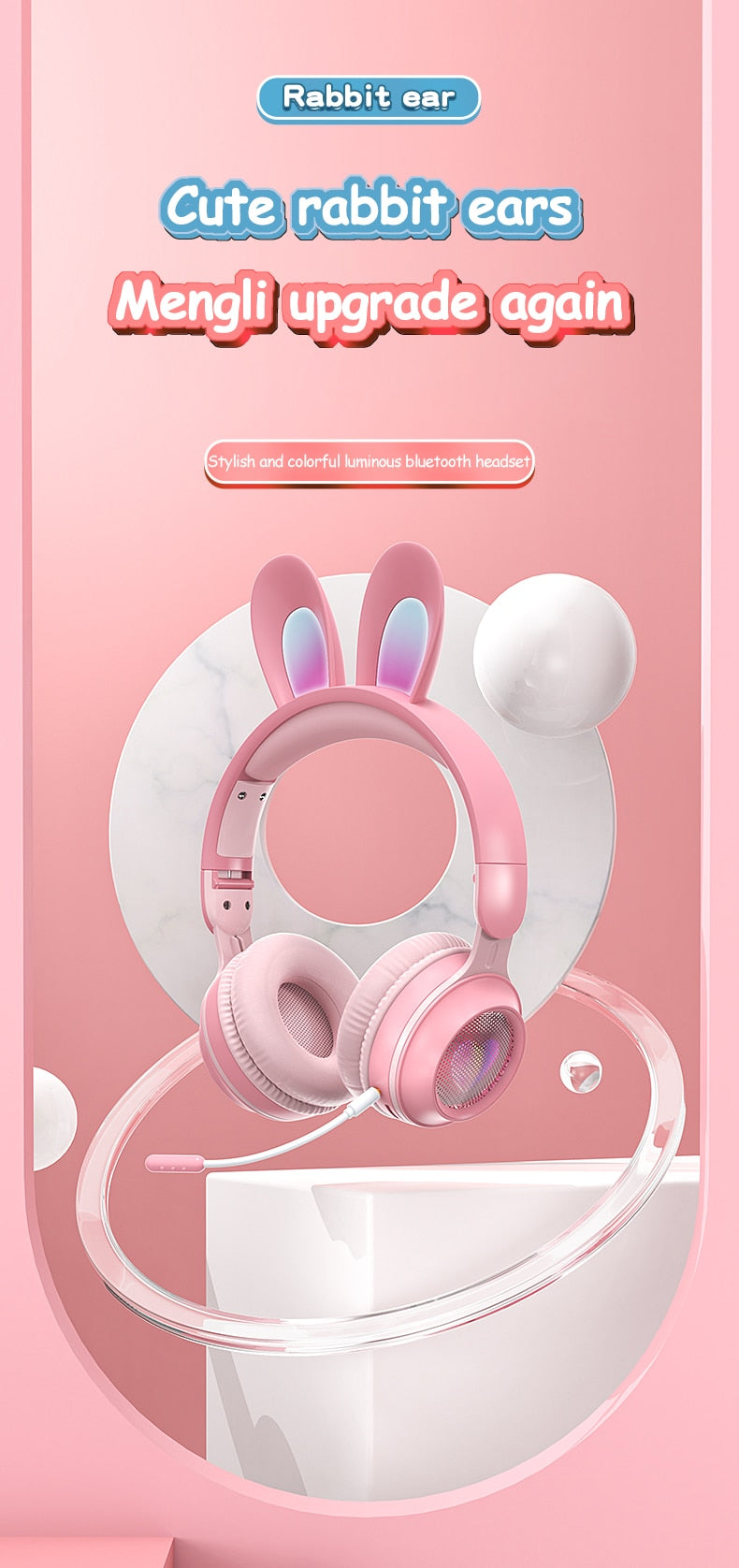 Rabbit Ear Headphones Wireless Luminous Extendable Wheat Headphones